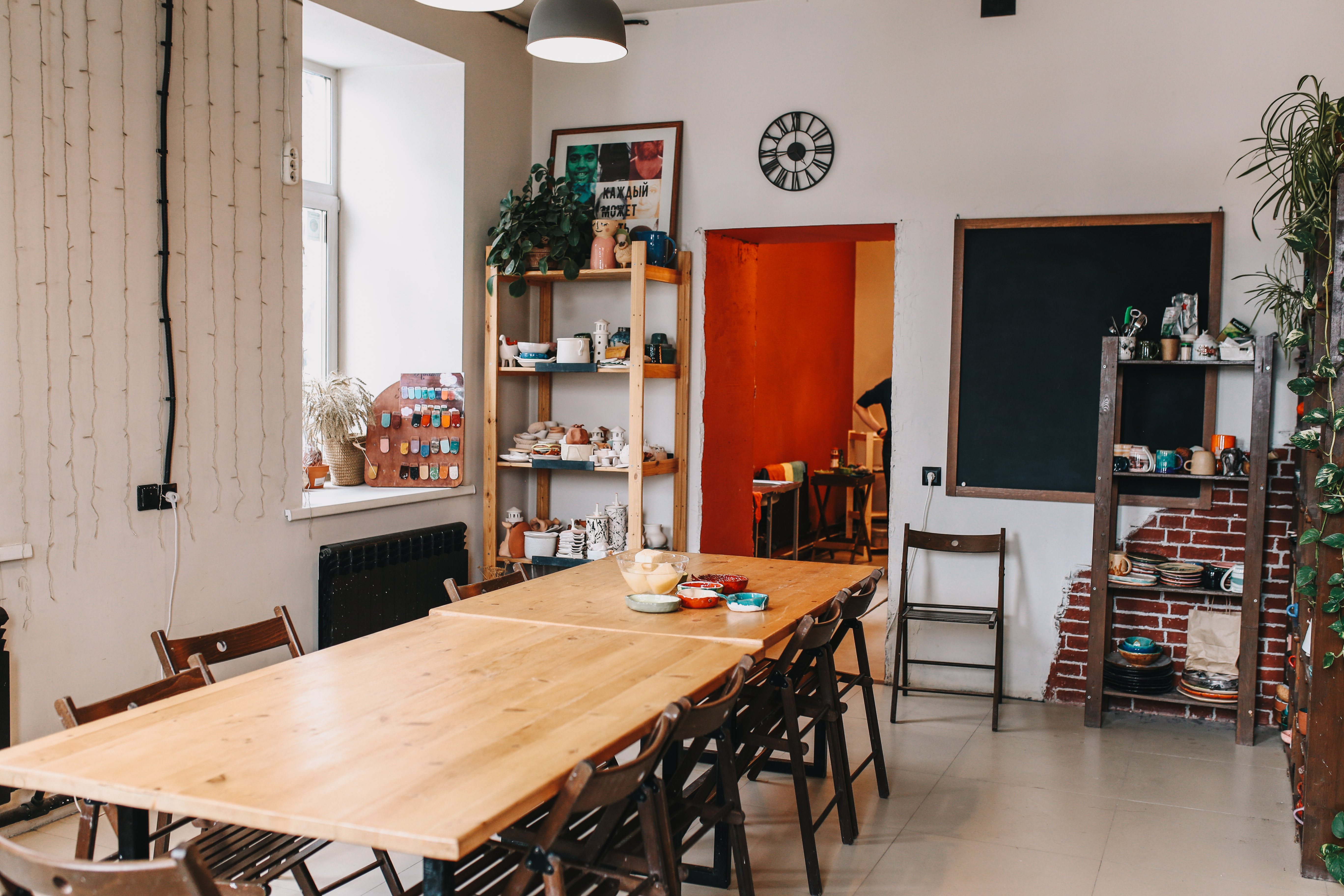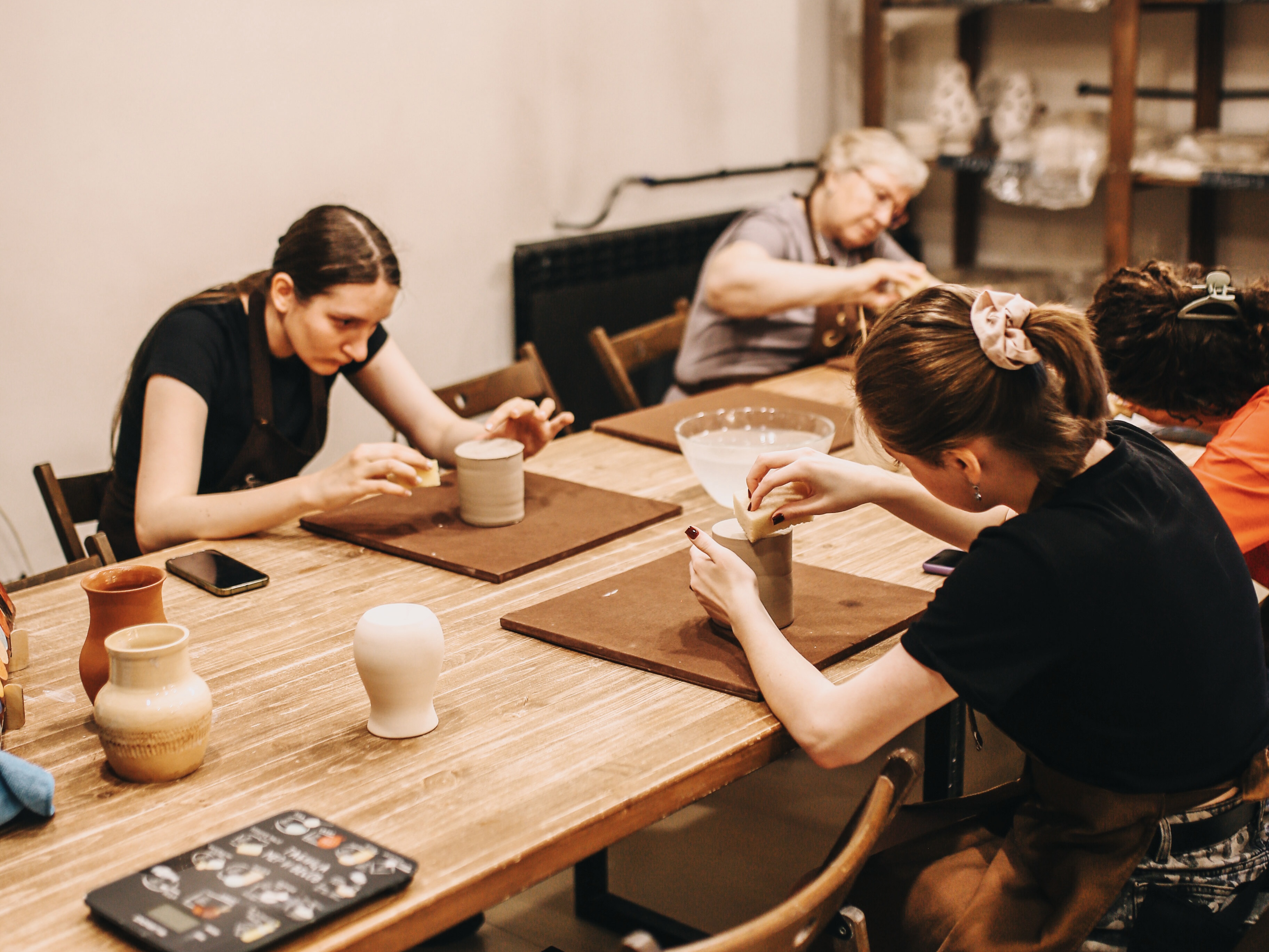 Выбор формата работы тоже за вами! В нашей школе вы можете выбрать между гончарными кругами или ручной лепкой. У нас есть 6 гончарных кругов, что позволяет занятиям проходить эффективно и увлекательно для групп до 6 человек. Если вас больше, мы с радостью привлечём дополнительного мастера, чтобы каждый получил максимальное удовольствие от процесса! 🕺🏼